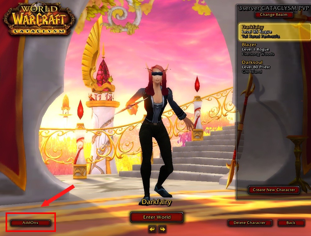 Přihlásíte se na svůj účet a zvolíte postavu, addony můžete povolit libovolně jakékoliv postavě na acc